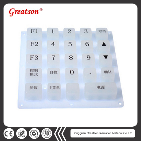 產品介紹:硅膠按鍵常被運用在電子計算器、遙控器、電話機、無線電話機、電子玩具、電腦鍵盤、學習機按鍵、密碼器按鍵、數碼產品按鍵當中; 考慮因素:硅膠按鍵制作需要考慮硅膠產品的直徑、長寬高的尺寸、按鍵行程距離、按力要求、產品硬度、顏色、導電要求等; 相關種類:硅膠按鍵包括單點硅膠按鍵、遙控器硅膠按鍵、導電硅膠按鍵、手機硅膠按鍵、輕觸硅膠按鍵、透光硅膠按鍵、鍵盤按鍵、密碼器按鍵、車載按鍵、薄膜按鍵、鐳雕按鍵、復位按鍵、home按鍵、pc按鍵、學習機按鍵、pos機按鍵、密碼器按鍵、數碼產品按鍵、p+r按鍵、貼片式硅膠按